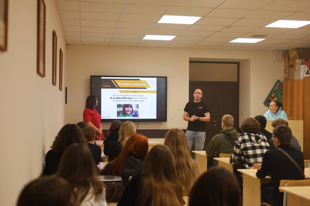 После выступления встреча перешла в формат открытого диалога. Студенты активно задавали вопросы и обсуждали, как стать волонтером отряда, какое оборудование самое важное в лесу и можно ли помочь поиску, не выходя из дома, как правильно общаться с пожилыми людьми с потерей памяти, которые выглядят растерянными на улице?