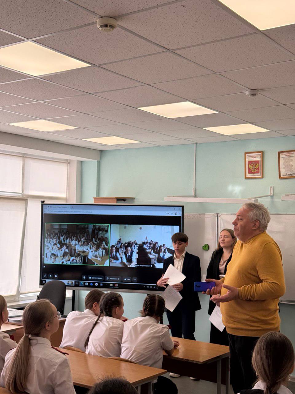 Особым моментом занятия стал телемост с учащимися лицея «Интеллект» (Донецкая Народная Республика). В ходе прямого общения ребята услышали важные слова о любви к Родине и о доблести Вооруженных Сил РФ, которые сегодня героически защищают суверенитет и границы нашего государства.