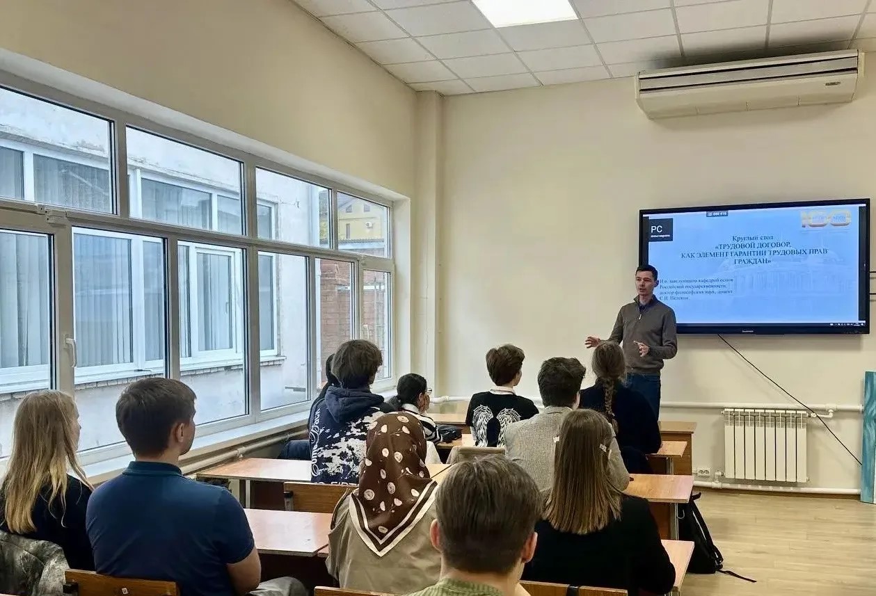 Сергей Игоревич подробно разобрал трудовой договор не просто как документ, а как единственный законный инструмент защиты интересов работника. В ходе беседы со студентами он акцентировал внимание на том, что именно официальное оформление даёт право на оплачиваемый отпуск, больничный и страховые выплаты. Особое внимание уделили «подводным камням» при подписании документов: на какие пункты смотреть в первую очередь, чтобы не оказаться в ситуации неоплачиваемого труда. Студенты узнали о механизмах защиты своих прав в случае конфликта с работодателем и о том, почему устные договорённости в профессиональной среде не имеют юридической силы.