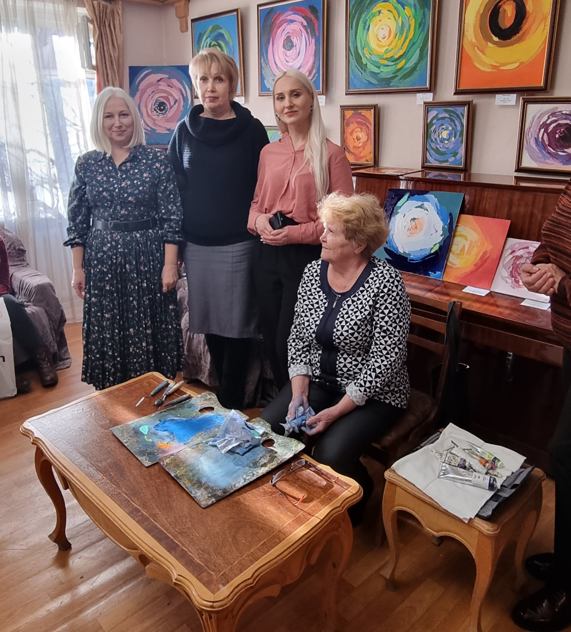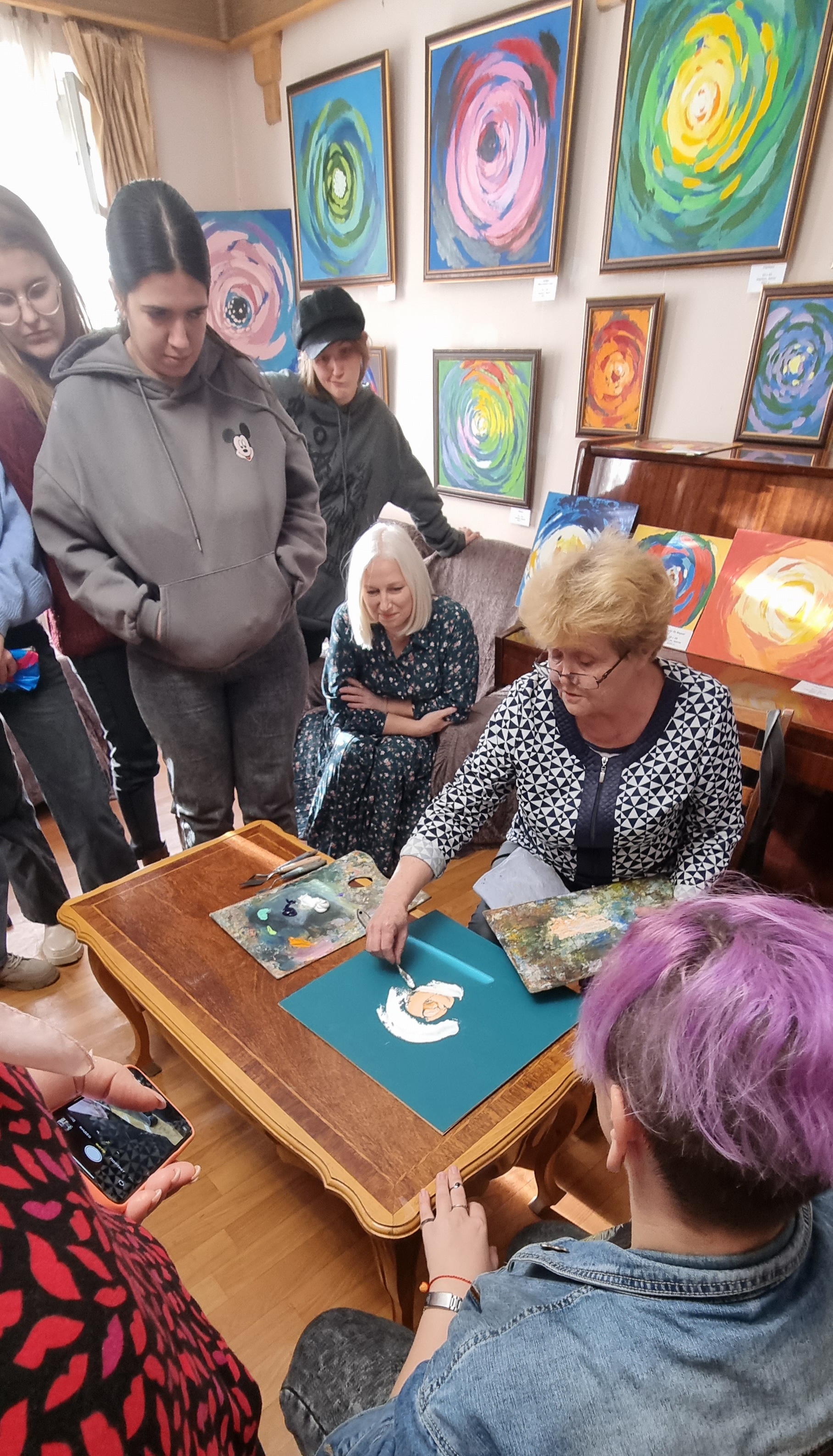 В этот раз обучающиеся факультета технологии, экономики и дизайна не только посетили выставку «100 оттенков цвета» члена Творческого союза художников России Ольги Марахиной, но и познакомились с самим автором.