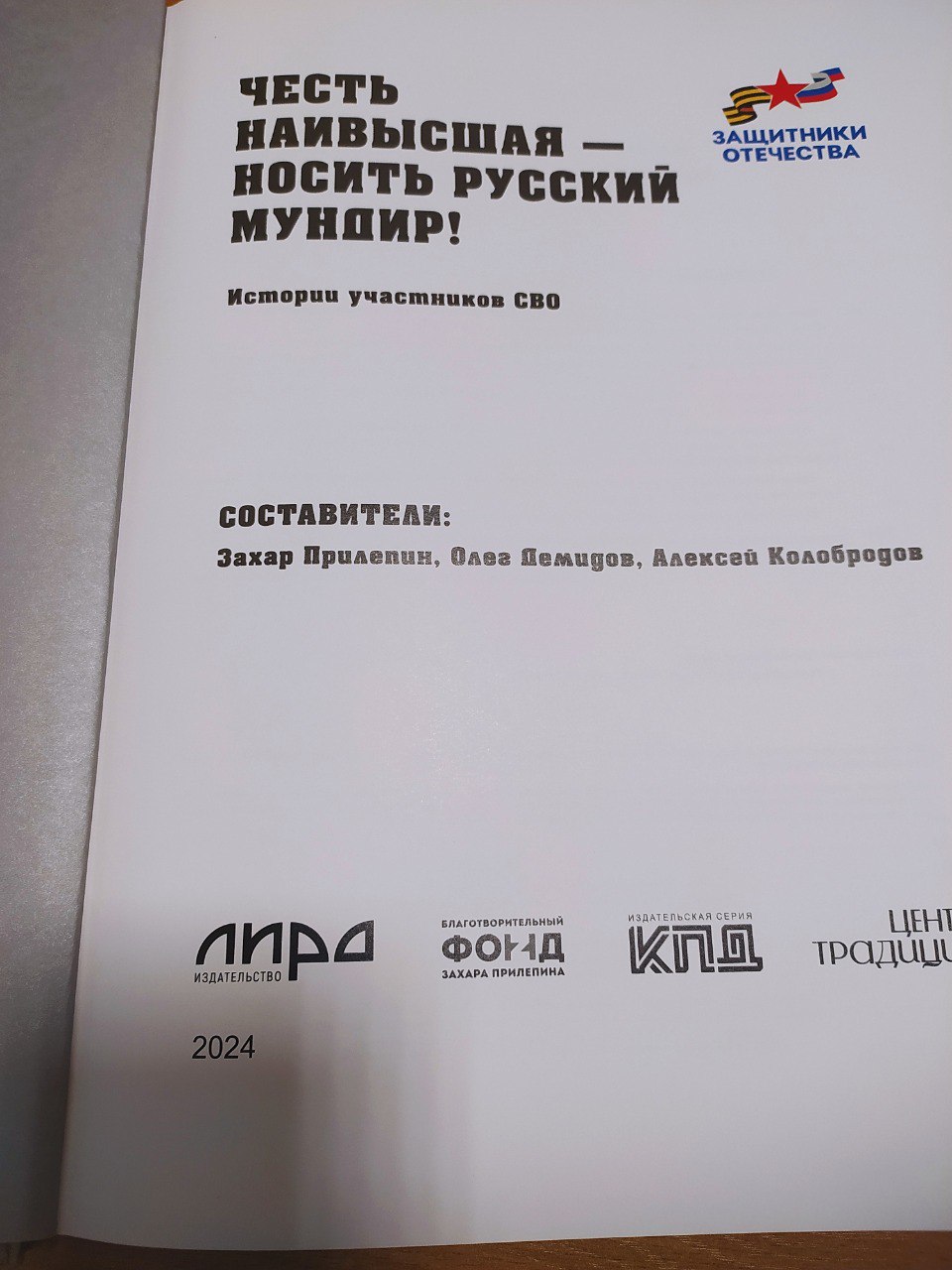 Эта книга, как и предыдущие две - «Жизнь за други своя» и «Нет уз святее товарищества», выпущены Государственным фондом «Защитники Отечества» под редакцией писателя Захара Прилепина подарена университету с целью использования материалов в работе студенческих театров при организации театральных постановок, спектаклей, литературных вечеров.