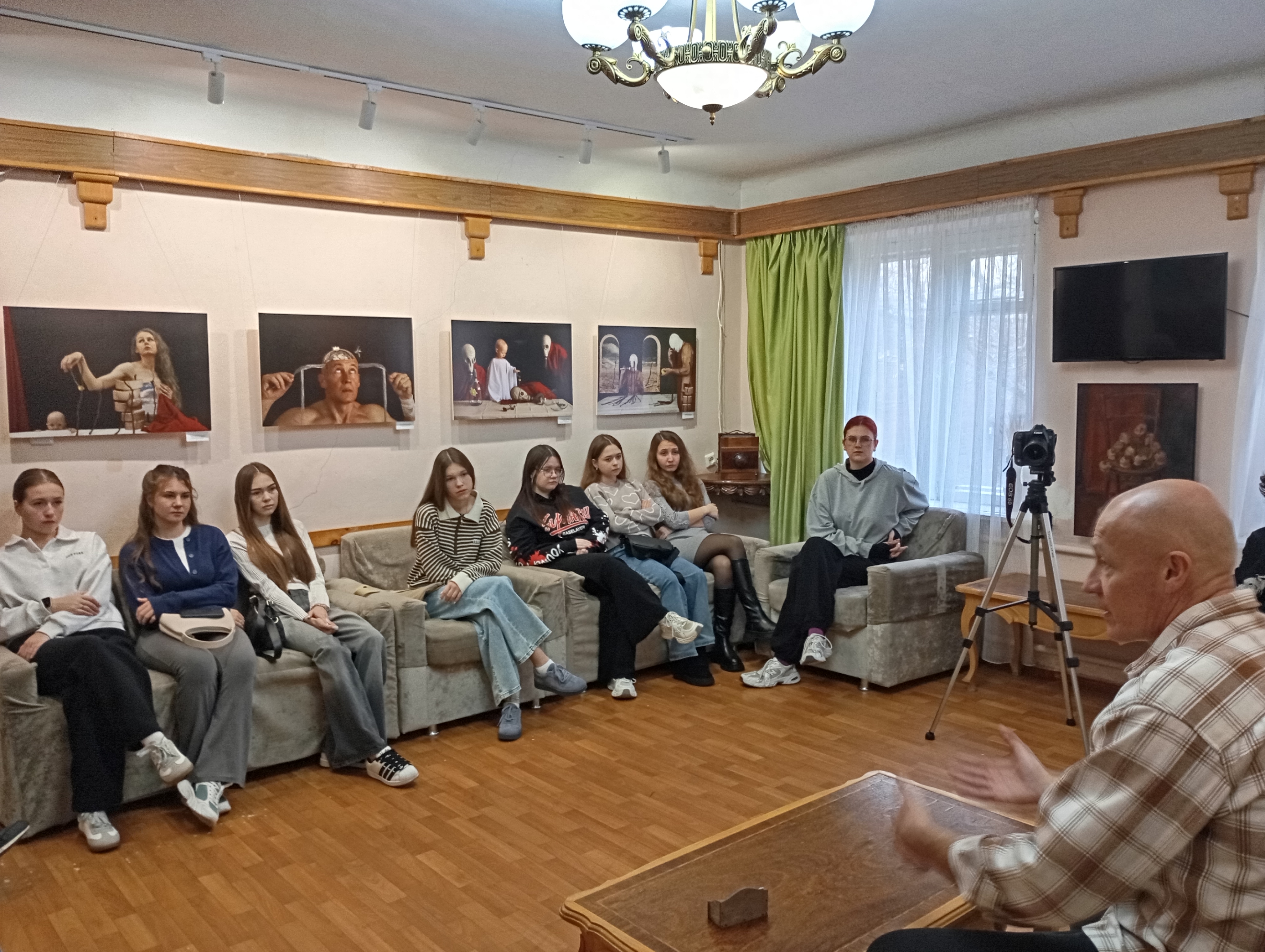 В ходе встречи Александр Ковязин поделился своей историей: как увлечение фотографией, начавшееся еще в школьные годы, превратилось в любимое дело. Он рассказал о тонкостях профессии, особенностях репортажной и документальной съемки, подчеркнув их важность в передаче живых событий.