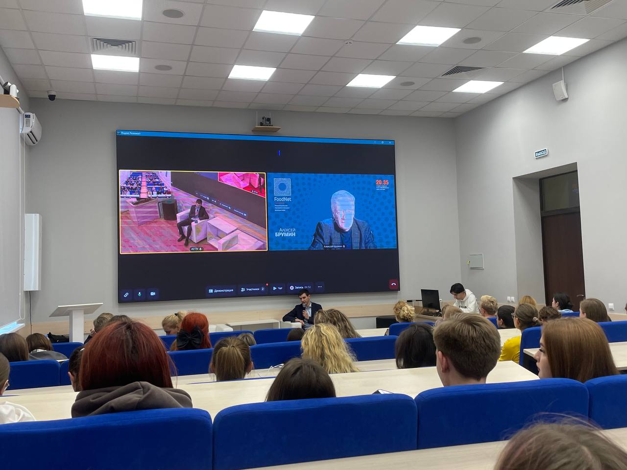 31 октября студенты-активисты факультета технологии и физической культуры в онлайн-формате встретились с ведущим экспертом ядра рабочей группы 2035 рынка НТИ FoodNet, руководителем направления АНО «Университет 2035», советником при ректорате Самарского национального исследовательского университета имени академика С.П. Королева», кандидатом технических наук Алексеем Бруминым.
