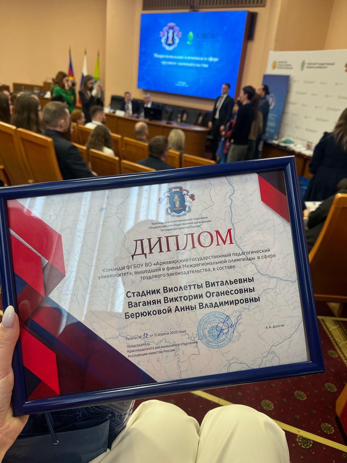 11.04.2025 года состоялись II и III этапы Межрегиональная олимпиада в сфере трудового законодательства в городе Краснодар Общероссийская общественная организация «Ассоциация юристов России»