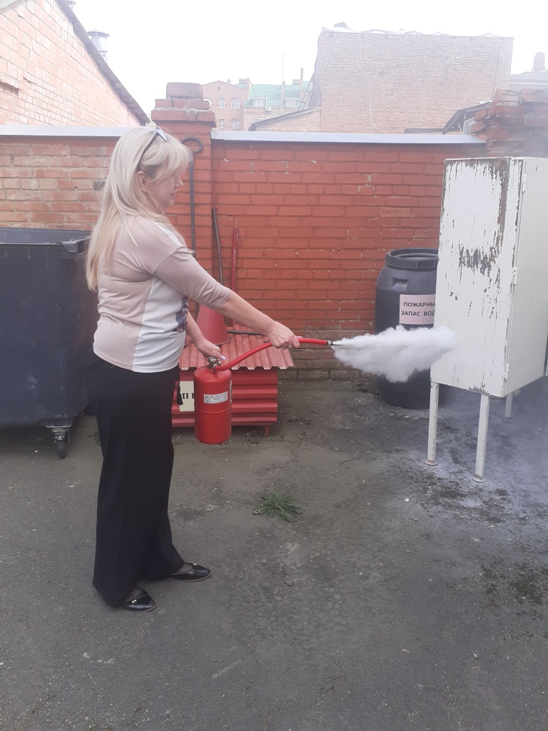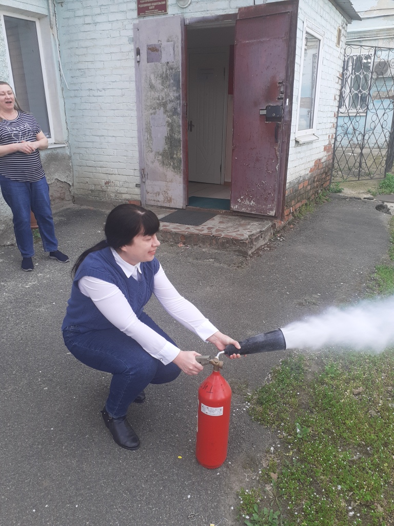 Обучение пользованию первичными средствами пожаротушения.