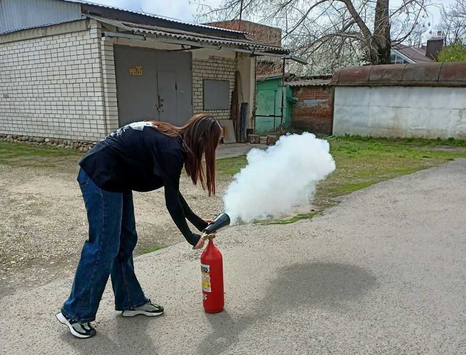 Участники тренировок ознакомились с устройством и применением первичных средств пожаротушения. Каждый участник на практике смог отработать навыки применения огнетушителя.
