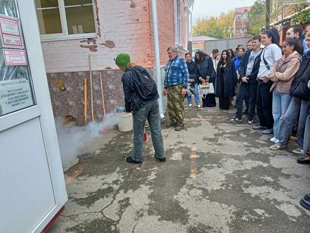 На всех объектах, сотрудники, преподаватели и студенты действовали уверено и оперативно. Эвакуация прошла планомерно. Участники тренировки ознакомились с первичными средствами пожаротушения и с правилами пользования огнетушителем.