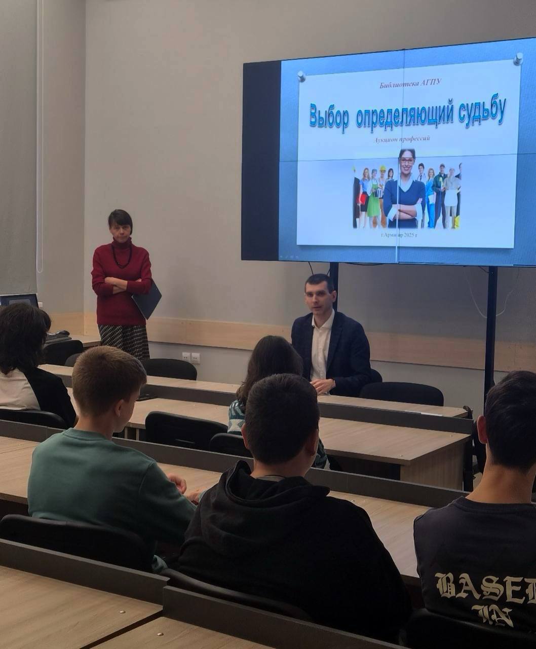 Выбор профессии – это не просто решение, это фундамент будущего. Именно поэтому сотрудники отдела обслуживания библиотеки АГПУ совместно с учащимися 8 класса МАОУ СОШ №7 им. Жукова отправились в увлекательное путешествие по миру профессий!