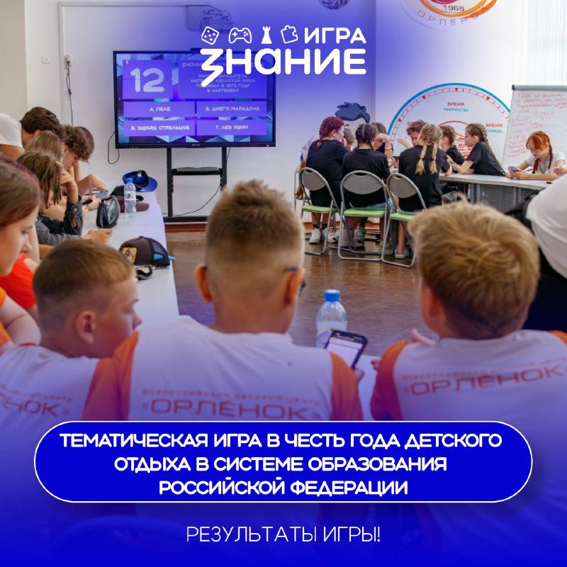 МИНИСТЕРСТВО ПРОСВЕЩЕНИЯ РОССИИ ОБЪЯВИЛО 2025 ГОД ГОДОМ ДЕТСКОГО ОТДЫХА В СИСТЕМЕ ОБРАЗОВАНИЯ. В РАМКАХ ЭТОГО СОБЫТИЯ ОБЩЕСТВО «ЗНАНИЕ» СОВМЕСТНО С КРУПНЕЙШИМИ ДЕТСКИМИ ЦЕНТРАМИ СТРАНЫ ПРОВЕЛО ТЕМАТИЧЕСКУЮ ИГРУ В РАМКАХ ТУРНИРА ЗНАНИЕ.ИГРА ПО ВИКТОРИНАМ. 15.08.2025 Читать больше