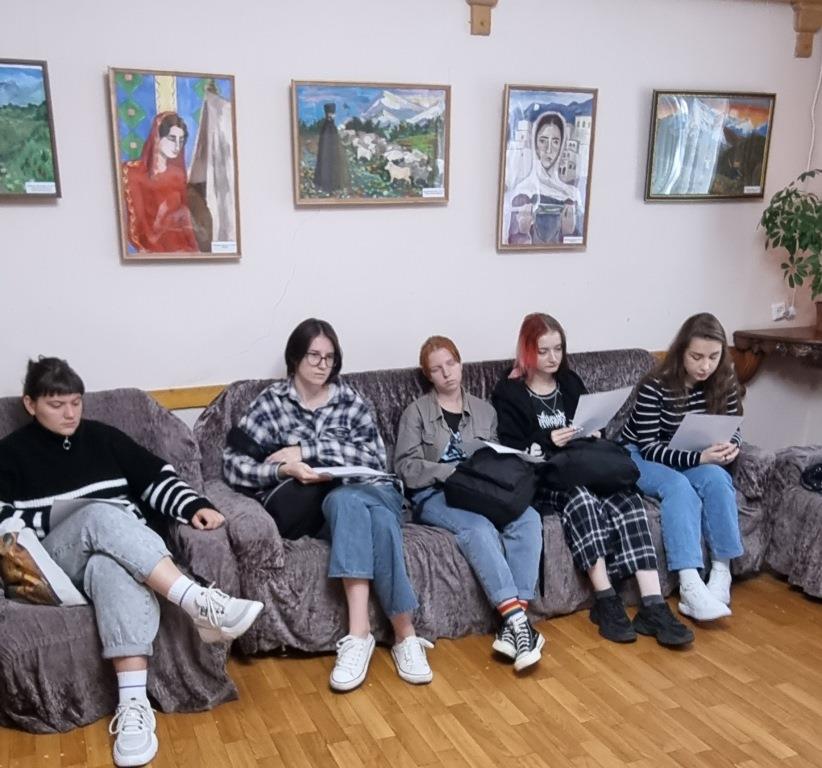 Студенты нашего вуза посетили экспозицию работ участников межмуниципального конкурса детского рисунка, посвящённого 100-летию со дня рождения Расула Гамзатова "Хочу любовь провозгласить страною", представленную в Доме Дангулова. Рисунки выполнили воспитанники художественной студии "Мастерская художника" Татьяны Хмель города Армавира.