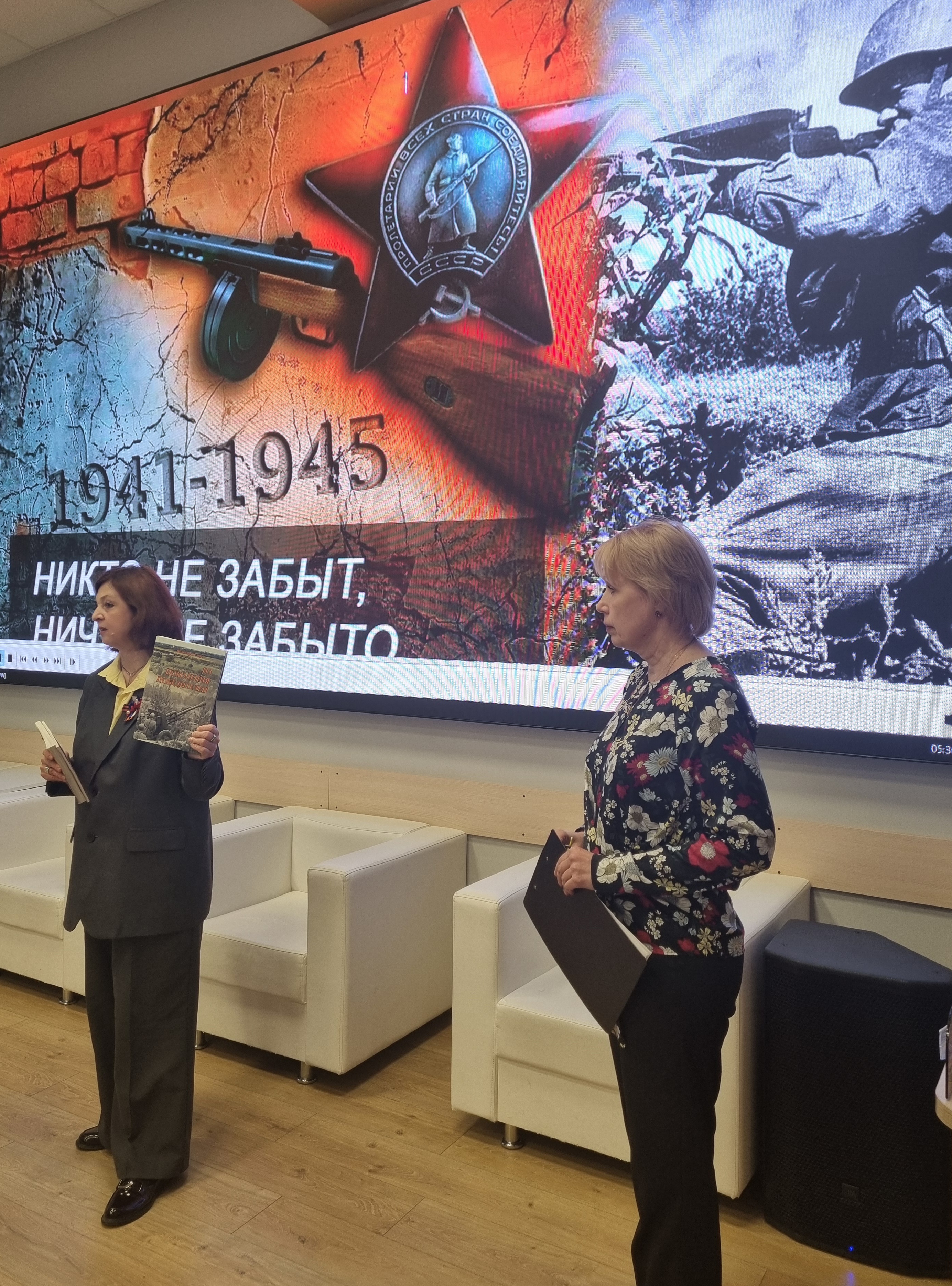 Сотрудник отдела обслуживания библиотеки АГПУ Данченко Светлана Анатольевна рассказала собравшимся о том, какой вклад народ нашей страны внес в Победу, поведала собравшимся о том страшном периоде, когда наш город находился в оккупации, о стойкости и героизме армавирцев, испытавших все ужасы войны.