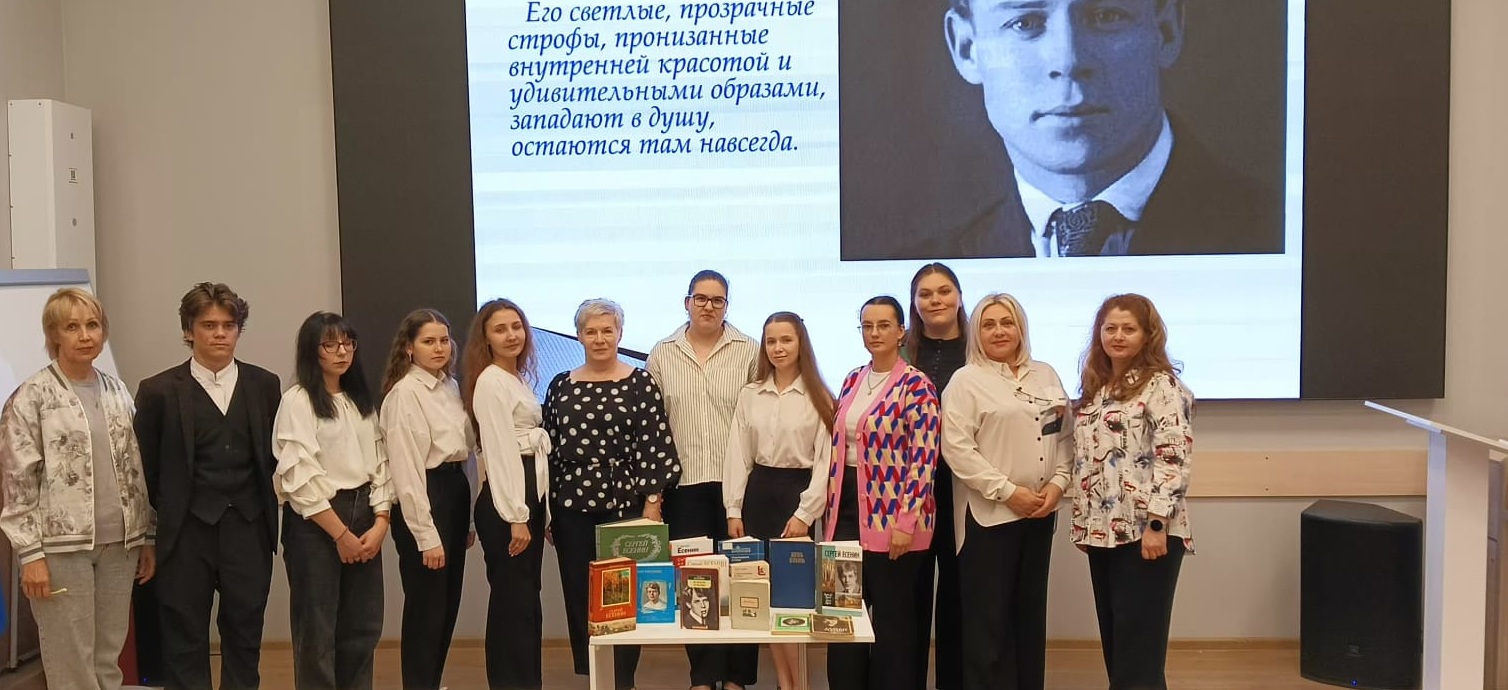 Библиотекарь отдела обслуживания Данченко Светлана представила участникам мероприятия книги из фонда библиотеки АГПУ, рассказывающие о жизни и творчестве Сергея Есенина.