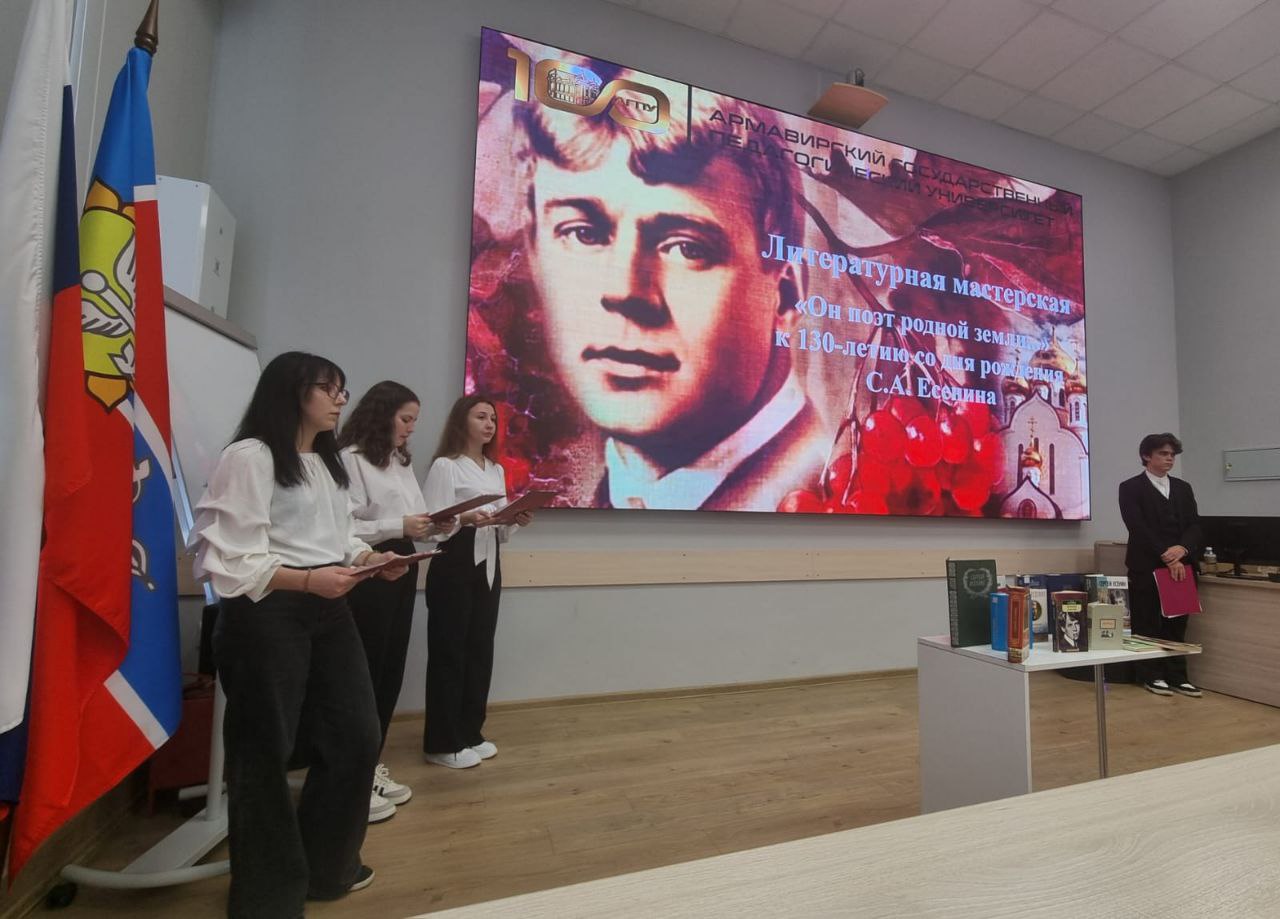 7 октября сотрудники библиотеки АГПУ приняли участие в мероприятии "Он поэт родной земли", посвященном 130 - летию со дня рождения Сергея Есенина. Литературная мастерская собрала студентов филологического факультета и университетского колледжа АГПУ, подарив им уникальную возможность прикоснуться к глубине души поэта отдавая дань и уважение великому мастеру слова.