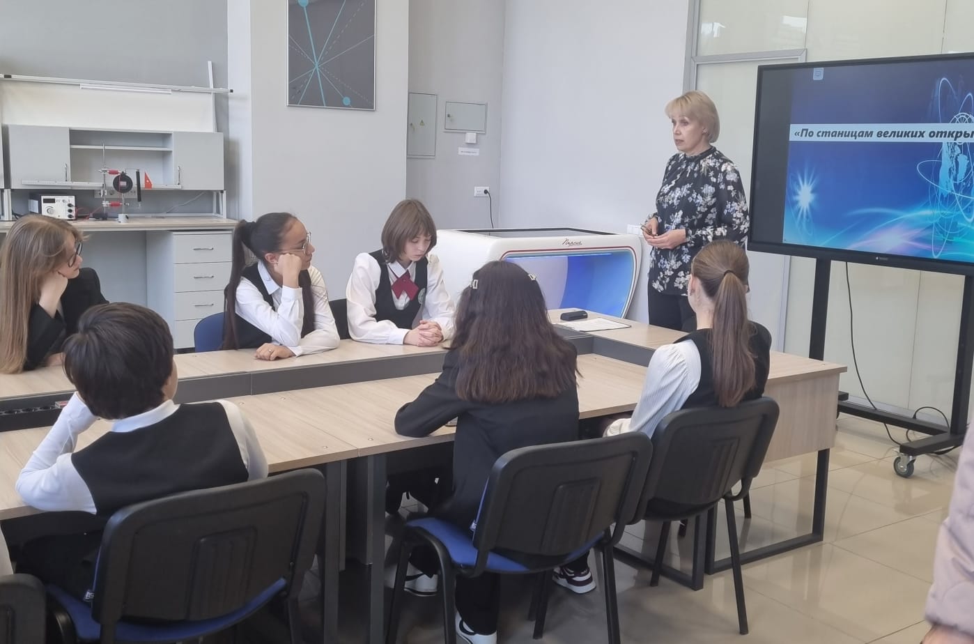 В преддверии Всемирного дня науки, в стенах библиотеки АГПУ и Технопарка универсальных педагогических компетенций «Учитель будущего поколения России» состоялась незабываемая тематическая встреча «По страницам великих открытий» для учеников 8 «В» класса МАОУ СОШ № 7 имени Г.К. Жукова.
