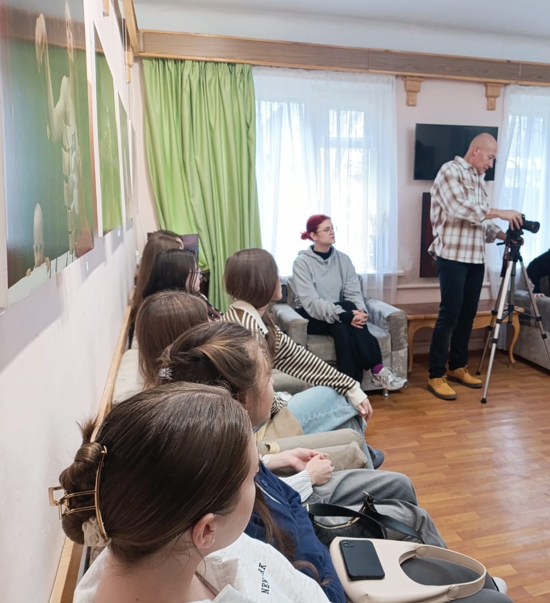 В ходе встречи Александр Ковязин поделился своей историей: как увлечение фотографией, начавшееся еще в школьные годы, превратилось в любимое дело. Он рассказал о тонкостях профессии, особенностях репортажной и документальной съемки, подчеркнув их важность в передаче живых событий.