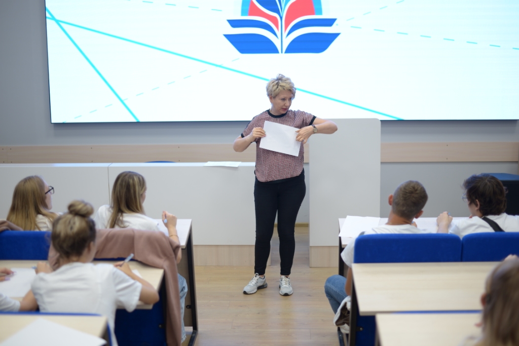 После обеда ребят ждало знакомство с доцентом кафедры отечественной филологии и журналистики Любовью Черновой, которая провела интерактивное занятие «Читаем и говорим вместе».