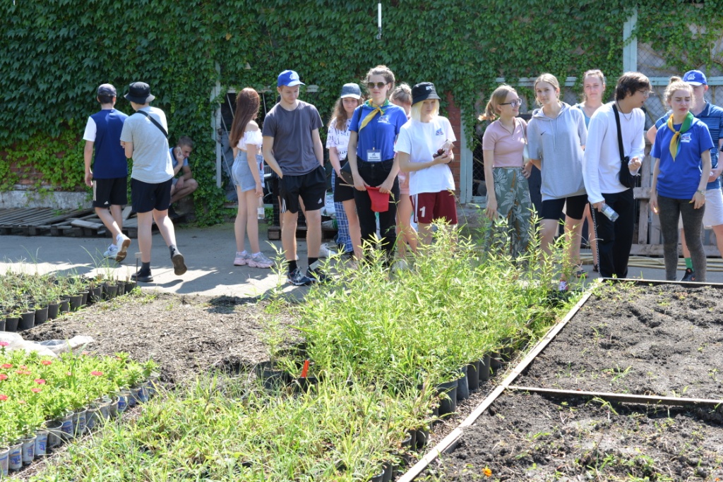 Утро участников смены началось с экскурсии в совхоз декоративных культур, где ребята смогли познакомиться с производством и реализацией саженцев хвойных, лиственных пород деревьев и кустарников, а также семян газонных трав.