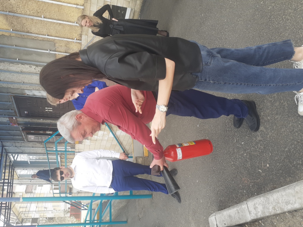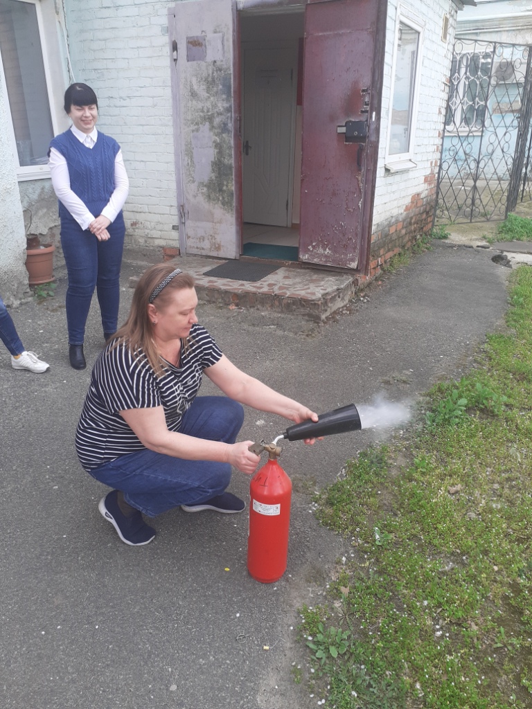 Обучение пользованию первичными средствами пожаротушения.