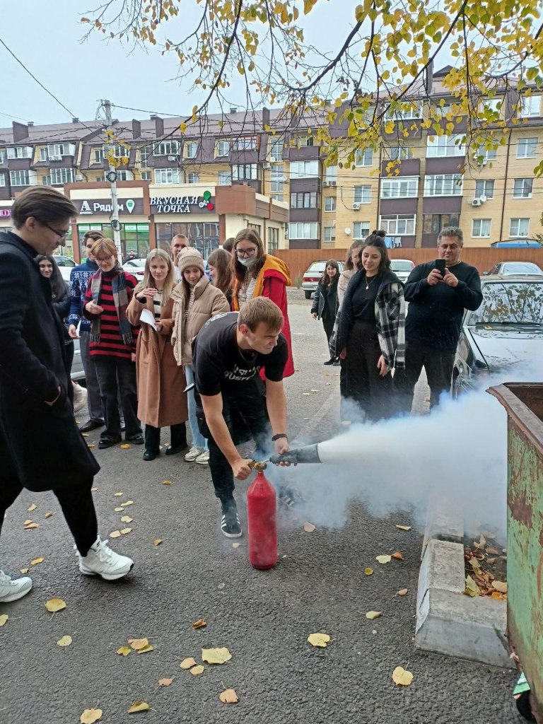 В ходе проведения тренировки, в целях обучения навыкам ликвидации (локализации) пожара было проведено практическое занятие с сотрудниками и обучающимися по правилам пользования огнетушителями.
